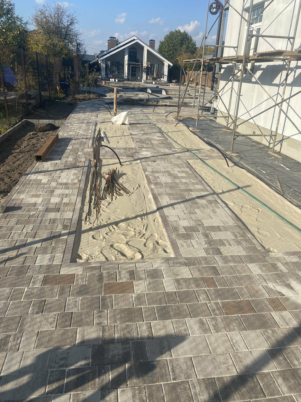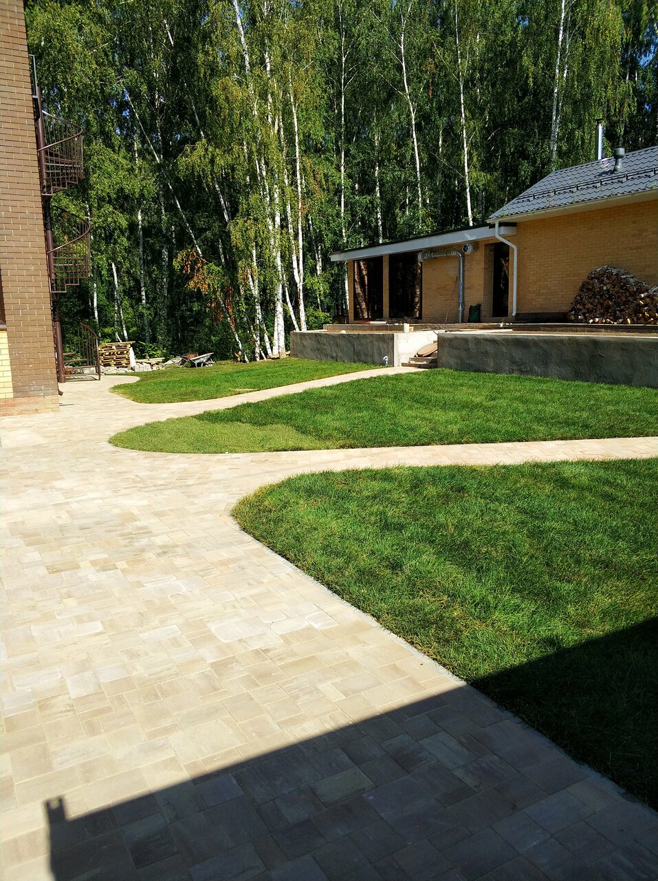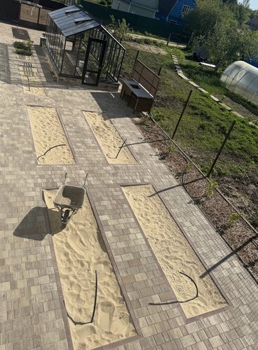 Быстро приехали на замер. Посчитали четко. Сами же полностью подготовили площадки и уложили брусчатку. Мы довольны, очень красиво и чисто сейчас на участке.