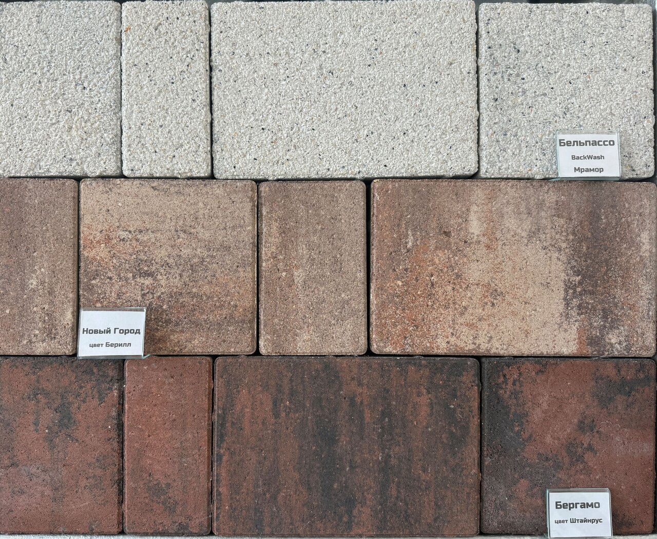 Яркие цвета брусчатки, есть из чего выбрать. Нам все понравилось, спасибо